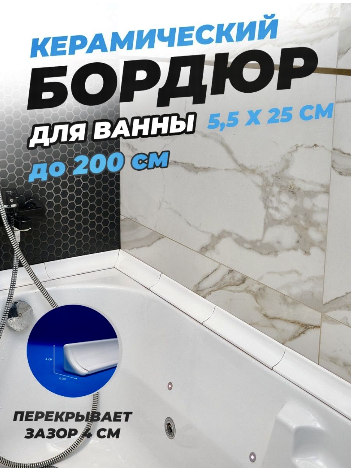 Бордюр на ванну керамический , плинтус бордюр, комплект уголков на ванну ЕВРО